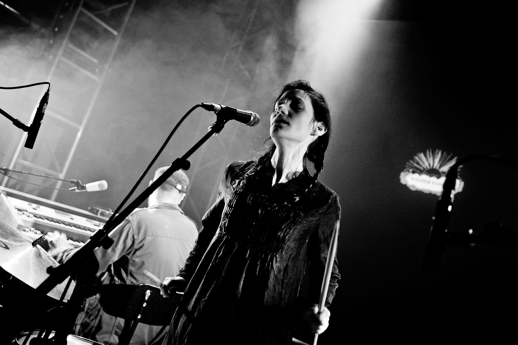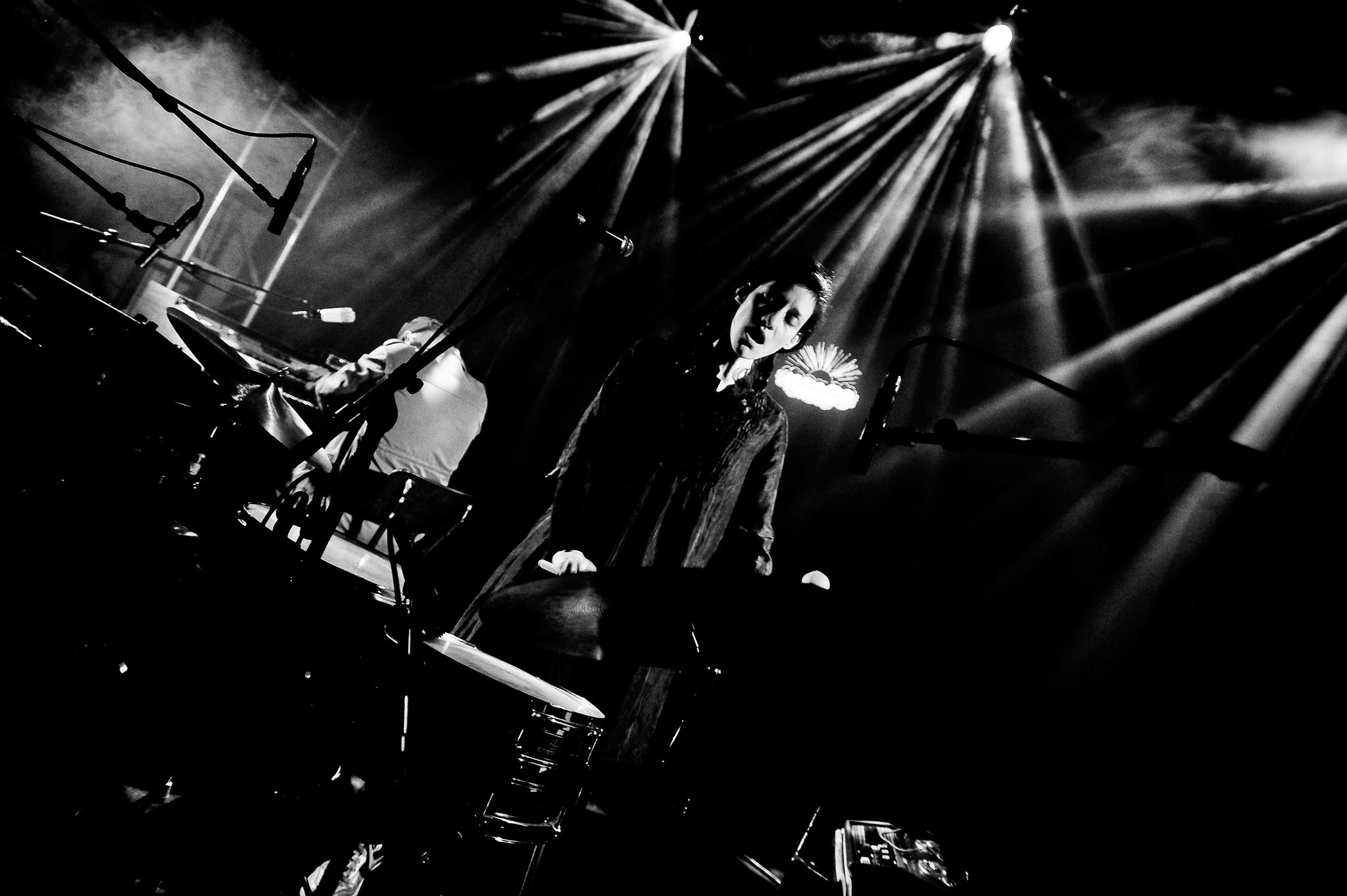 La consigne donnée aux batteurs : jouer ensemble. Un système de codes lumineux nous permet de communiquer et de donner différentes directions sonores à l’ensemble.